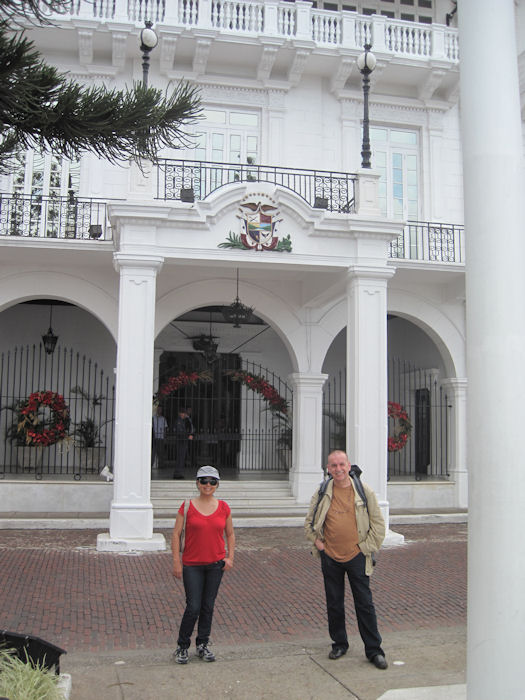 Mitten in der Altstadt befinden sich einige Regierungsgebäude und Ministerien. Hier stehen Zulema und Hans-Jürgen vor dem Präsidentenpalast.
