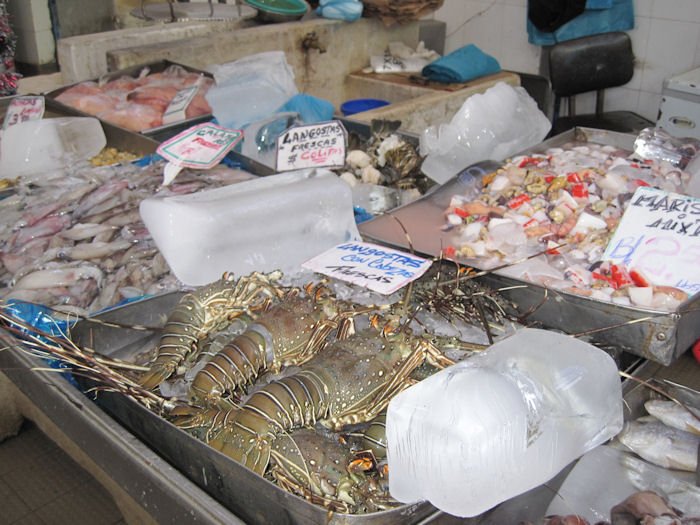Danach sind wir dann noch zum "Mercado de Mariscos" (Meeresfrüchtemarkt) gefahren. Im Obergeschoss haben wir den besten Fisch der ganzen Reise gegessen.