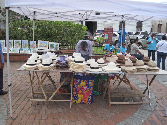 Davor einer der überall anzutreffenden Stände mit "Panamahüten". Aber - wie ja wohl jeder weiß (grins) - stammen die Hüte aus Ecuador. Den Name "Panamahut" bekamen die Hüte, weil