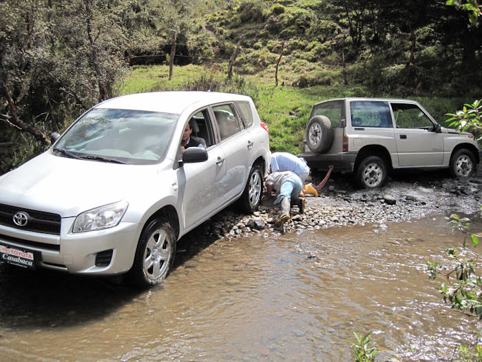 Gefahren ist dieses Mal Martin. Und sein Auto (Toyota RAV4) wurde auch gleich richtig gefordert. Auf dem Weg zu den Ilinizas (auf dem Rückweg vom Cotopaxi) steckte ein Wagen fest, den wir dann rausgezogen haben. Die Strecke war durch Regenfälle wirklich in nem schlechten Zustand. Wir hatten aber keine Probleme.