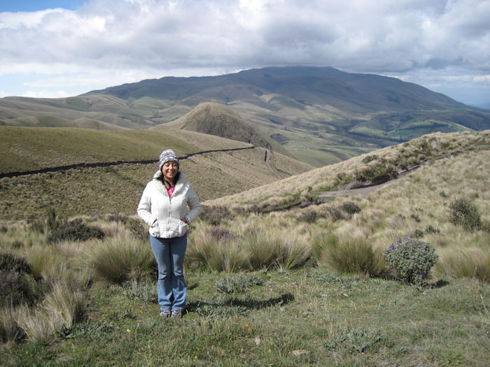 Zulema auf 3900m Höhe. Dick eingepackt und frierend...