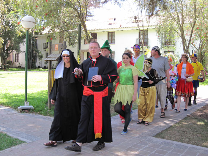 Dazu wählte sich jeder einen Paten und beide verkleiden sich. Zum Glück gibt es in Quito diverse Kostümverleihe.