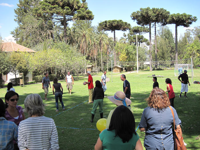 Ansonsten wurde viel gespielt. Hier eine Gruppe beim Völkerball. Daneben wurden Fußball und Volleyball gespielt. Es gab ein Schwimmbad, das einige nutzten.