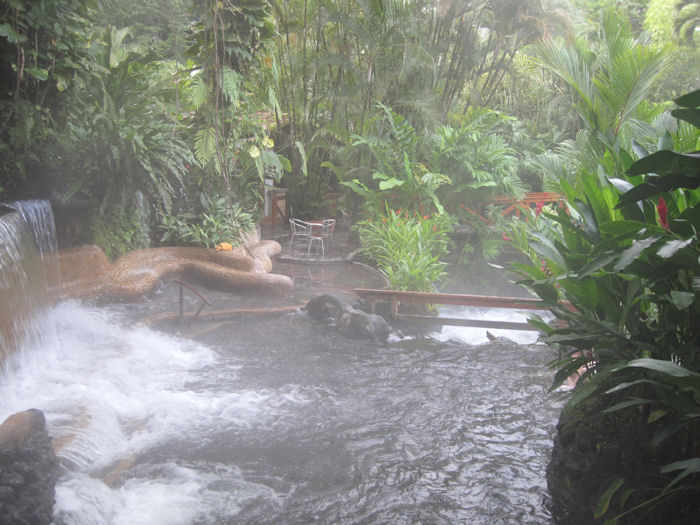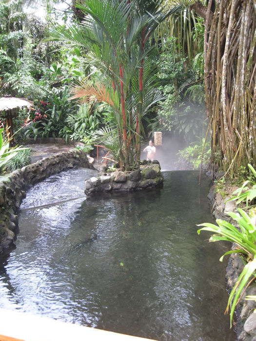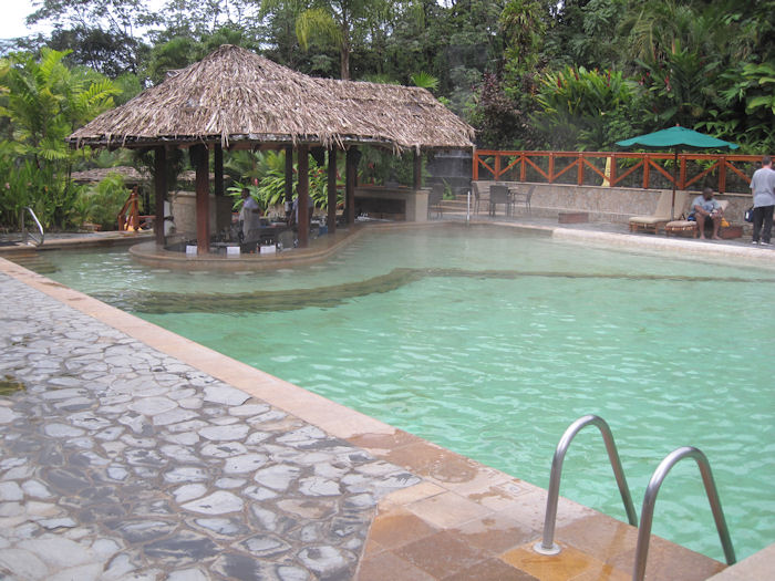Dafür besuchten wir Thermalquellen, die von dem Vulkan erwärmt werden. Hier die Poolbar...