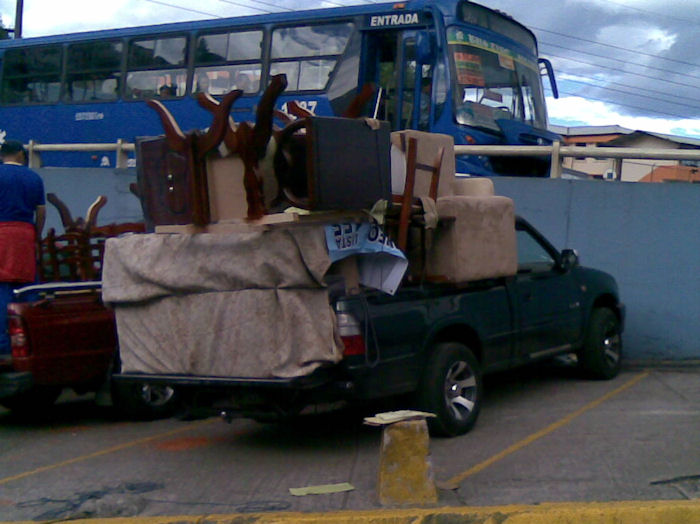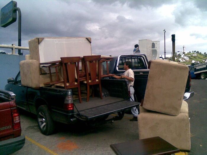 Es ist erstaunlich, was so alles auf eine Camionetta passt: 2 Sofas, 2 Sessel, ein Couchtisch, 2 Esstische, 10 Stühle, 3 Nachtschränke und ein Fernsehschrank.