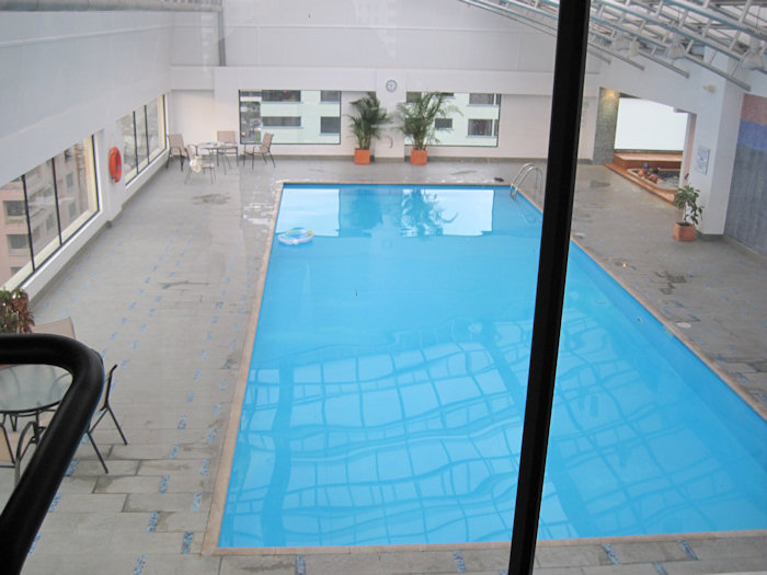 Dazu gehört ein Schwimmbad, Sauna und Dampfbad. Und das alles ist sehr sauber und in deutlich besserem Zustand als im Hotel Quito.