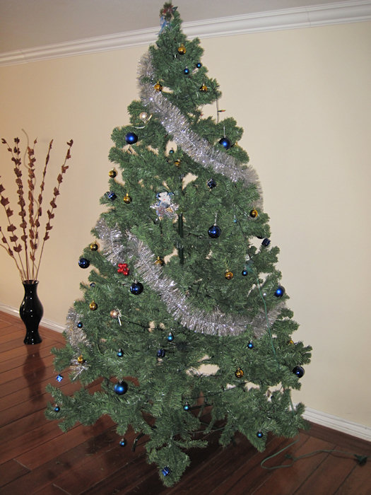 Und pünktlich zu Nikolaus (wie das hier so üblich ist) hatte ich dann auch nen Weihnachtsbaum im Wohnzimmer stehen. Und wie das hier auch üblich ist, ist er künstlich.