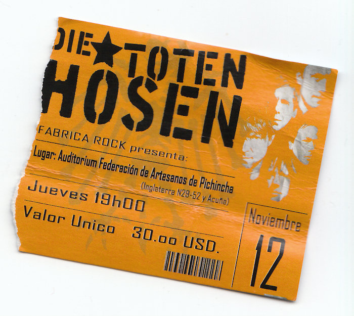 Am 12. Dezember spielten dann die Toten Hosen in Quito. Wir hatten davon erst gar nichts mitbekommen. 3 Tage vor dem Konzert kursierte dann das Gerücht im Lehrerzimmer.