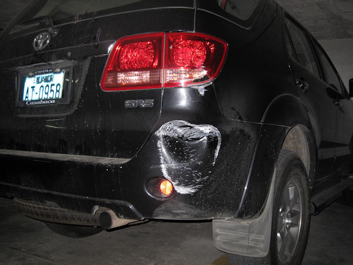 noch eine neue (?) Wand... Und mein Auto kannte die noch nicht... Und so ist es passiert! Inzwischen ist der Schaden wieder behoben (hat mich 330 Dollar gekostet und etwas Ärger mit der