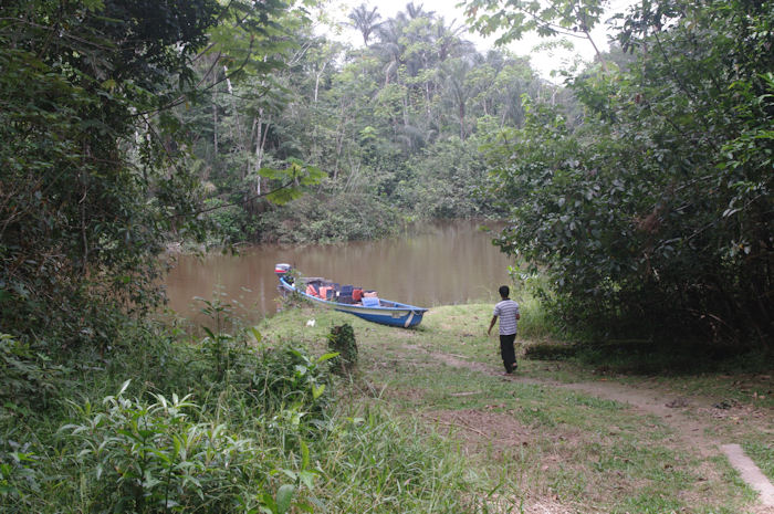 ...Dann stiegen wir in ein Motor-Kanu um, das uns in den nächsten Tagen auf dem Fluss beförderte.