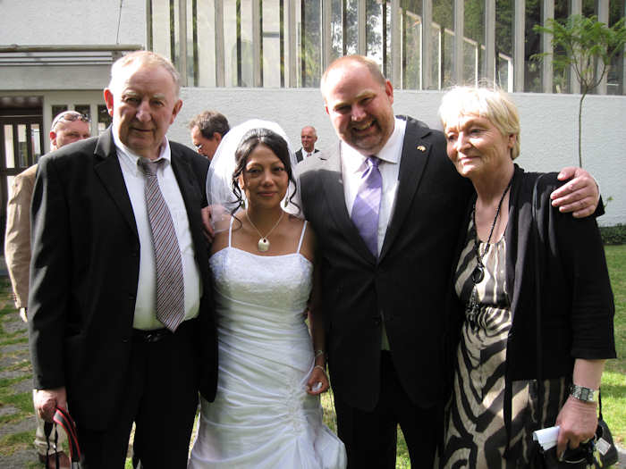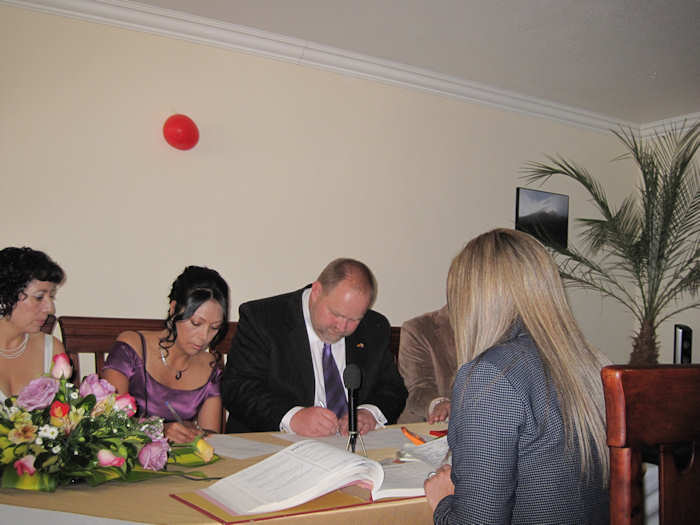 Hier sieht man uns beim Unterschreiben der Urkunde. Die Standesbeamtin hatte es ziemlich eilig, wir waren nach 10 Minuten fertig.