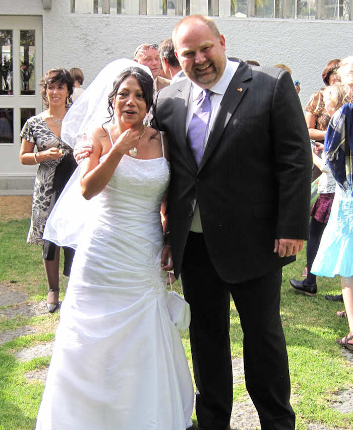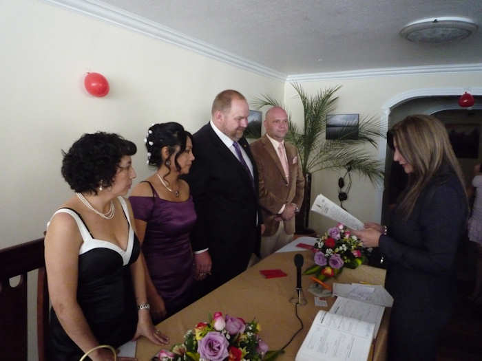 Wir hatten uns entschieden, die standesamtliche Trauung bei uns zu Hause zu machen. Man kann hier den Standesbeamten - in unserem Fall eine Frau - ins Haus bestellen. Man zahlt dann anstelle der hier üblichen